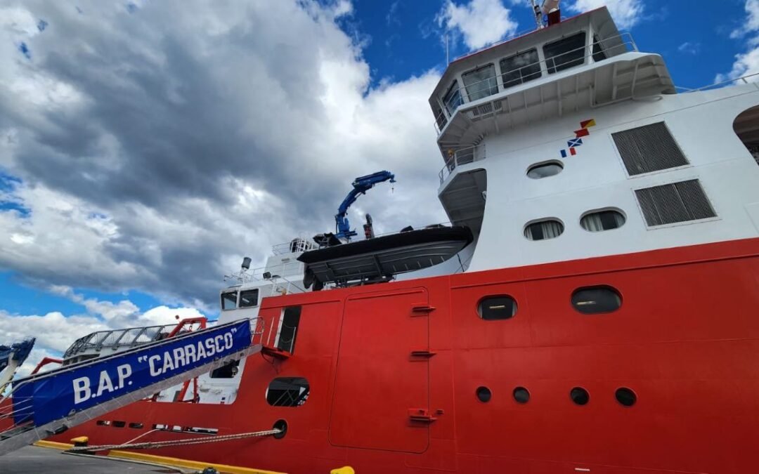 El secretario de Relaciones Parlamentarias y Articulación Política de la Municipalidad de Ushuaia, Omar Becerra, visitó el B.A.P. Carrasco, buque científico de última generación de la Marina de Guerra del Perú que llegó a la capital fueguina en el marco de la Campaña Científica ANTAR-XXXII.