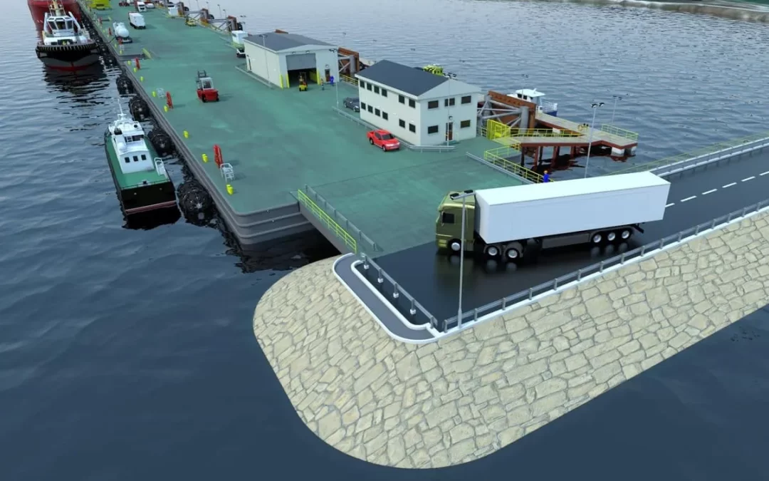 La administración británica en las Islas Malvinas anunció la firma de un contrato con la empresa holandesa Damen Civil and Modular Construction BV para el diseño y construcción de un nuevo puerto que reemplazará a las estructuras flotantes de FIPASS, operativas desde 1984. El proyecto contempla la fabricación de cuatro barcazas modulares y una infraestructura portuaria moderna con una capacidad de 400 metros de muelle, pensada para operar por al menos cincuenta años.