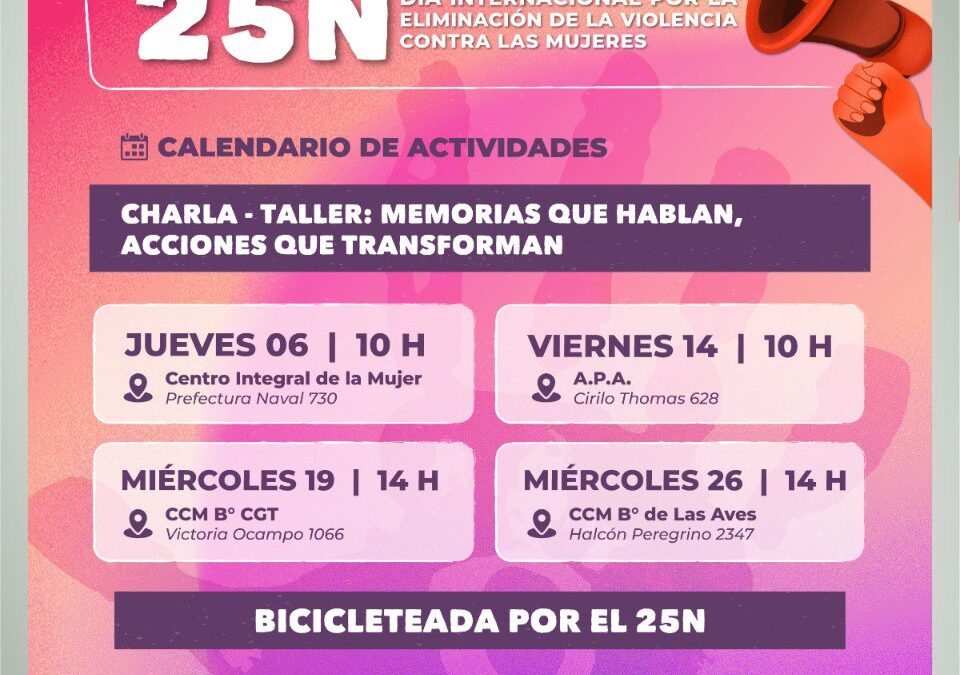 En el marco del Día Internacional por la Eliminación de la Violencia contra las Mujeres, el Municipio, a través de la Secretaría de Género y Desarrollo Comunitario, llevará adelante durante noviembre una agenda de actividades destinadas a promover la reflexión, la conciencia colectiva y la construcción de espacios libres de violencia. Entre las propuestas se encuentra la charla-taller “Memorias que hablan, acciones que transforman”, que abordará la historia del 25 de noviembre y el legado de las hermanas Mirabal, con el objetivo de repensar las luchas colectivas y su impacto en la erradicación de las violencias de género.