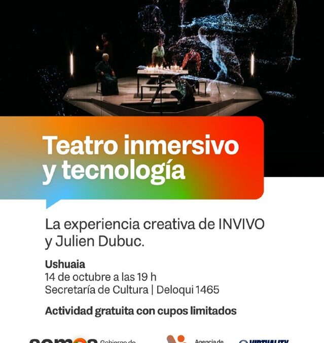 La Secretaría de Cultura de Tierra del Fuego invita a la masterclass del director francés Julien Dubuc, creador de la compañía INVIVO, que se realizará el martes 14 de octubre a las 19 horas en Deloqui 1465, Ushuaia. La actividad es libre y gratuita, y cuenta con el acompañamiento de Virtuality y la Alianza Francesa de Ushuaia.