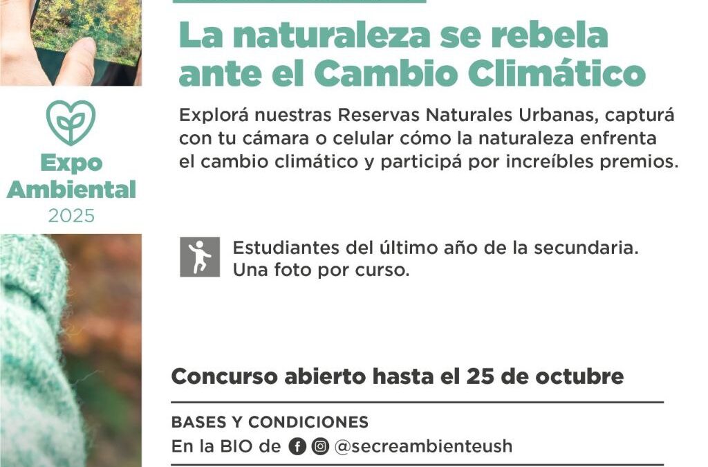 La Municipalidad de Ushuaia invita a estudiantes del último año del nivel secundario a participar del concurso de fotografía “La naturaleza se rebela ante el cambio climático”, una propuesta que busca promover la conciencia ambiental y destacar la biodiversidad de las Reservas Naturales Urbanas.