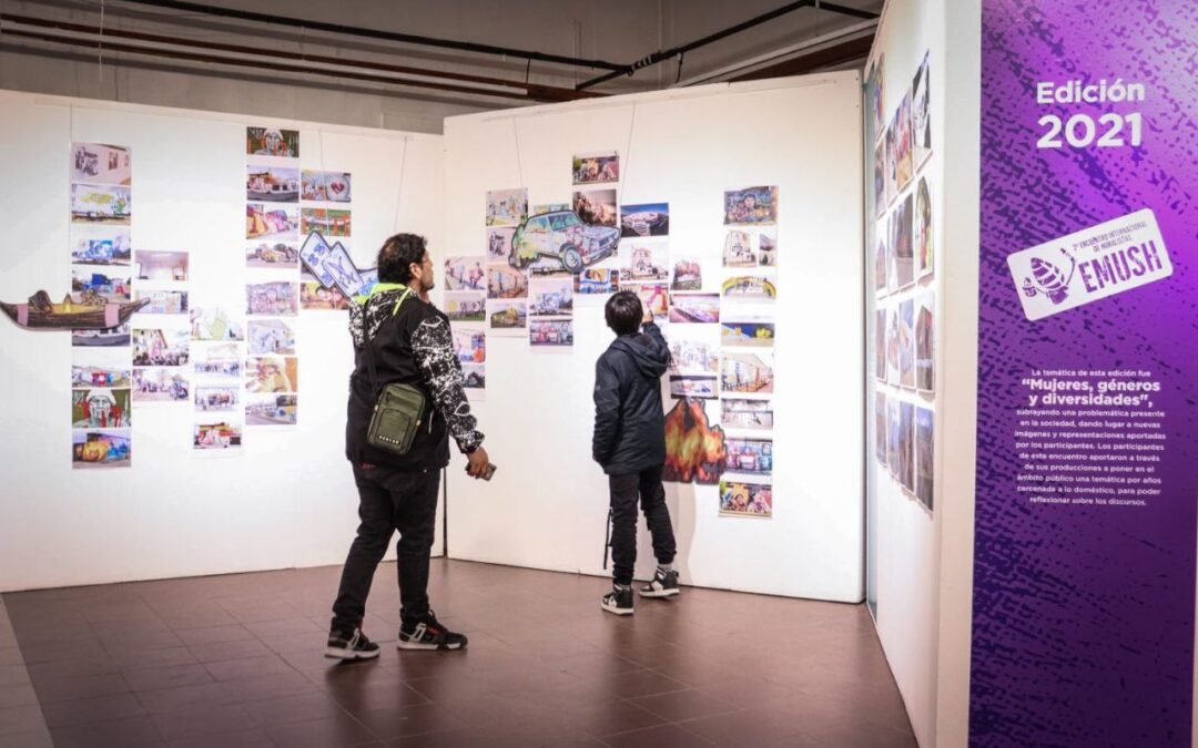 La propuesta, que reúne trabajos del programa de Muralismo municipal iniciado en 2018 y del Encuentro Internacional de Muralistas en el Fin del Mundo EMUSH, presenta a las y los visitantes material visual referido a las más de 350 obras que embellecen la ciudad de Ushuaia.