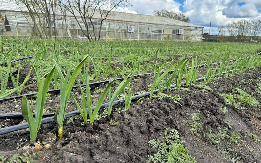 De esta manera, el agua llega en profundidad, alcanzando a las raíces del ajo violeta y asegurando un crecimiento saludable de las plantas.