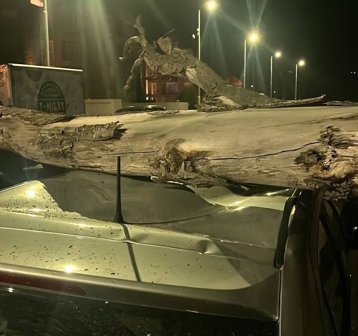 Personal policial intervino ayer en la intersección de calles Del Pipo y Los Ñires, en Ushuaia, donde un árbol cayó sobre dos vehículos a raíz de las fuertes ráfagas de viento.